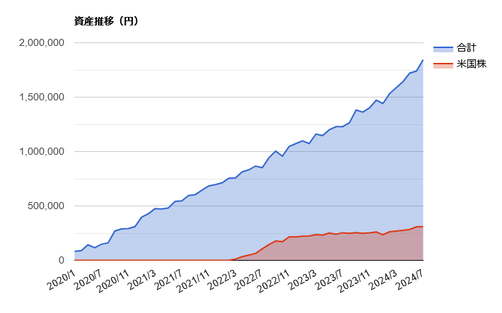 現在の総資産です。円換算です。証券口座の資産合計が184万円になりました。
