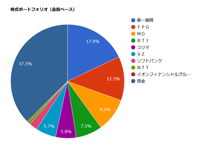 また、期限を決めず、米国の高配当株「MO(アルトリアグループ)」、「BTI(ブリティッシュアメリカンタバコ)」、「VZ(ベライゾンコミュニケーションズ)」を随時追加(当面の目標は20株ずつ)していこうと思います。こちらは配当金の再投資のみで増やしていきます。