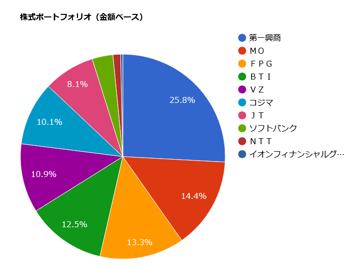 現時点での投資対象は「個別株式」のみです。高配当株のみで構成する戦略です。
