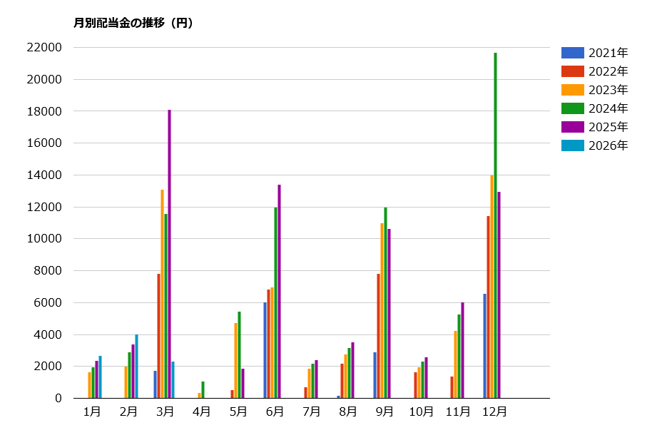 2025年3月に受け取った配当金の合計は、2,340円でした。昨年はJTとヒューリックの力が大きかったのが良くわかりますね。