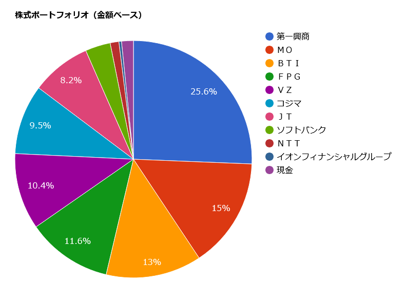 現時点での投資対象は「個別株式」のみです。高配当株のみで構成する戦略です。